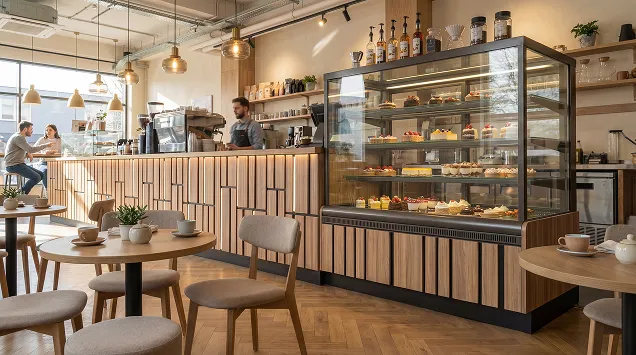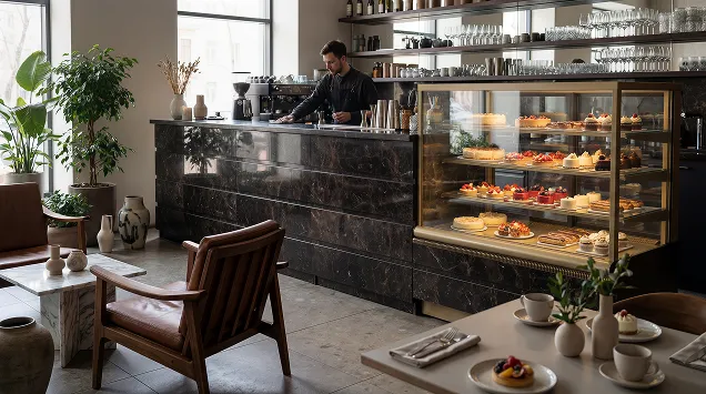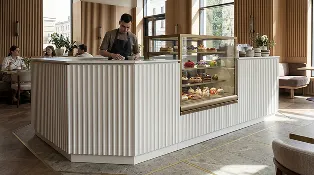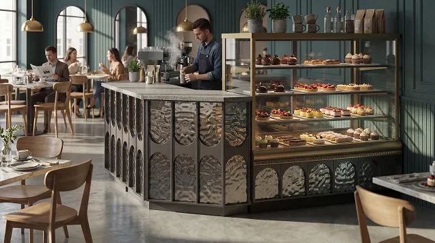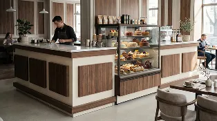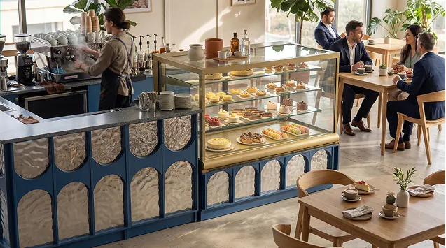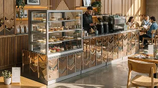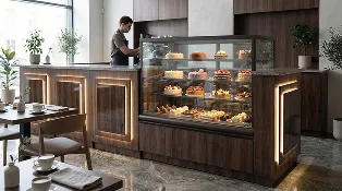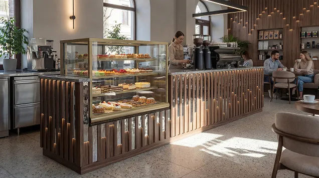 Наша компания предлагает уникальное решение для кафе, ресторанов и баров — встроенные кондитерские витрины, интегрированные непосредственно в барные стойки. Это современный и функциональный подход к демонстрации десертов, выпечки и других деликатесов.