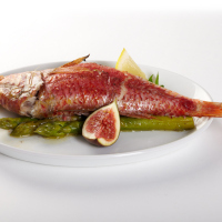 Запеченная барабулька со спаржей