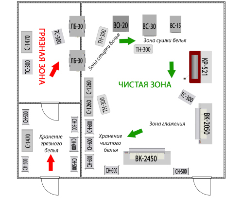 - складирование и транспортировку сухого и мокрого белья
